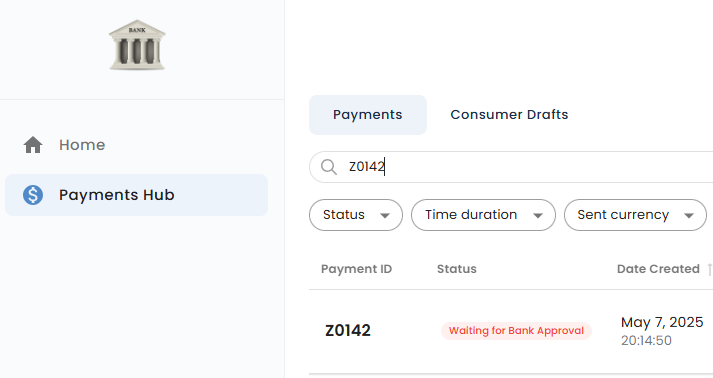 Optional, use the Waiting for Bank Approval status filter