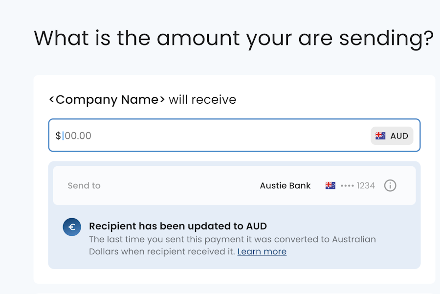 To ensure clarity and prevent potential discrepancies, the payment details are updated to reflect the actual currency delivered to the recipient. This can reduce or eliminate the risk of unexpected and potentially costly conversions, ensuring more accurate and efficient payment delivery for payees. End user will see the updated currency the next time they attempt to pay this recipient, with a notification that there was an update.